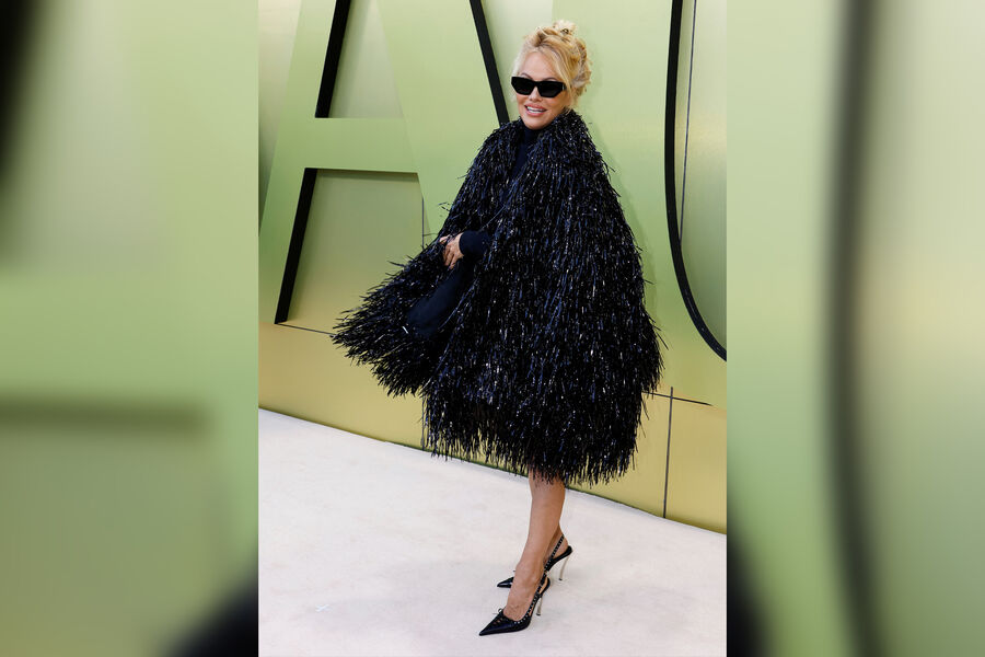 55-летняя Памела Андерсон пришла на показ Versace FW'23/24, который прошел в минувший четверг, 9 марта, в Pacific Design Center в Западном Голливуде (штат Калифорния, США). «Спасательница Малибу» надела черную водолазку с мини-юбкой и накидкой с бахромой, дополнив образ солнцезащитными очками и остроносыми туфлями на каблуке. Наряд подчеркнул ее стройные ноги.