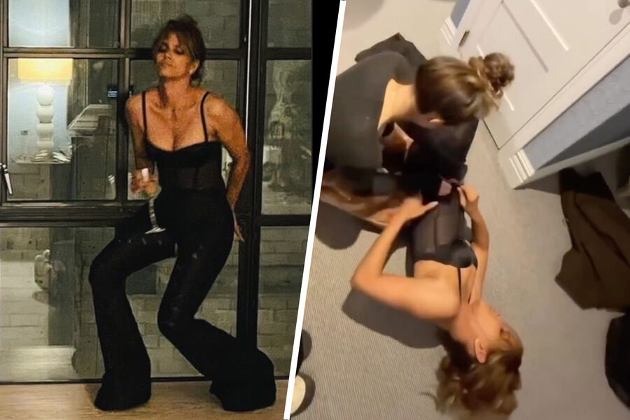 56-летняя Холли Берри выложила в социальных сетях фото, на котором она лежит на полу, пытаясь натянуть черные штаны-клеш. В непростом деле ей помогла стилист Линдси Флорес. Поклонников рассмешил способ, и они написали в комментариях: «Давно я так от души не смеялся», «Прекрасный способ для надевания таких брюк», «Выглядите шикарно и смешно».