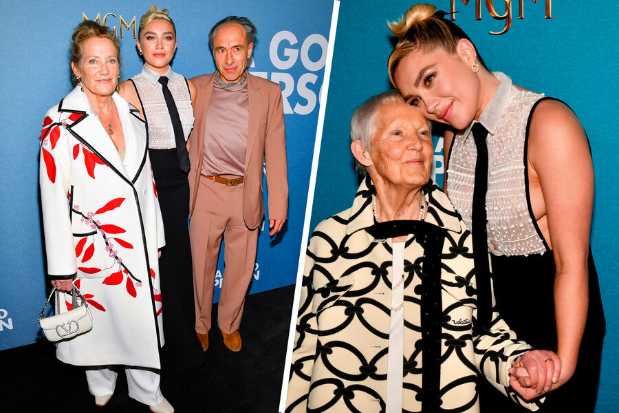 Поддержать Флоренс пришли ее родители Дебора и Клинтон Пью, а также бабушка Пэт. Актриса сфотографировалась с матерью и отцом, после чего позировала папарацци в обнимку с бабушкой.