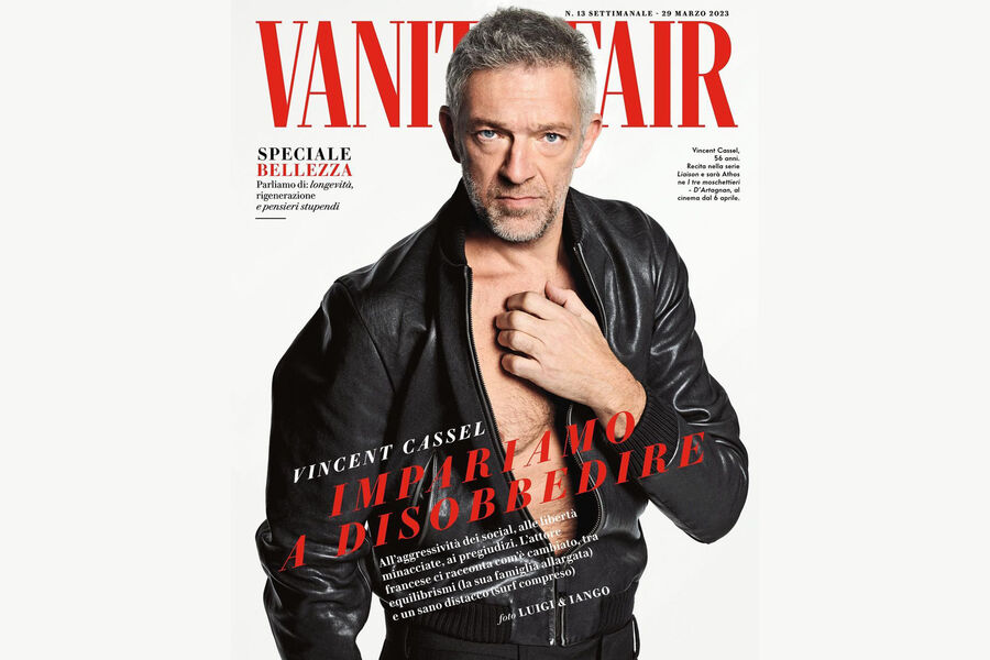 56-летний Венсан Кассель стал героем свежего номера итальянской версии журнала Vanity Fair. Фотографы Луиджи Мурену и Янго Хензи сняли актера в кожаном бомбере на молнии, которую он расстегнул, обнажив грудь, и брюках от Prada.