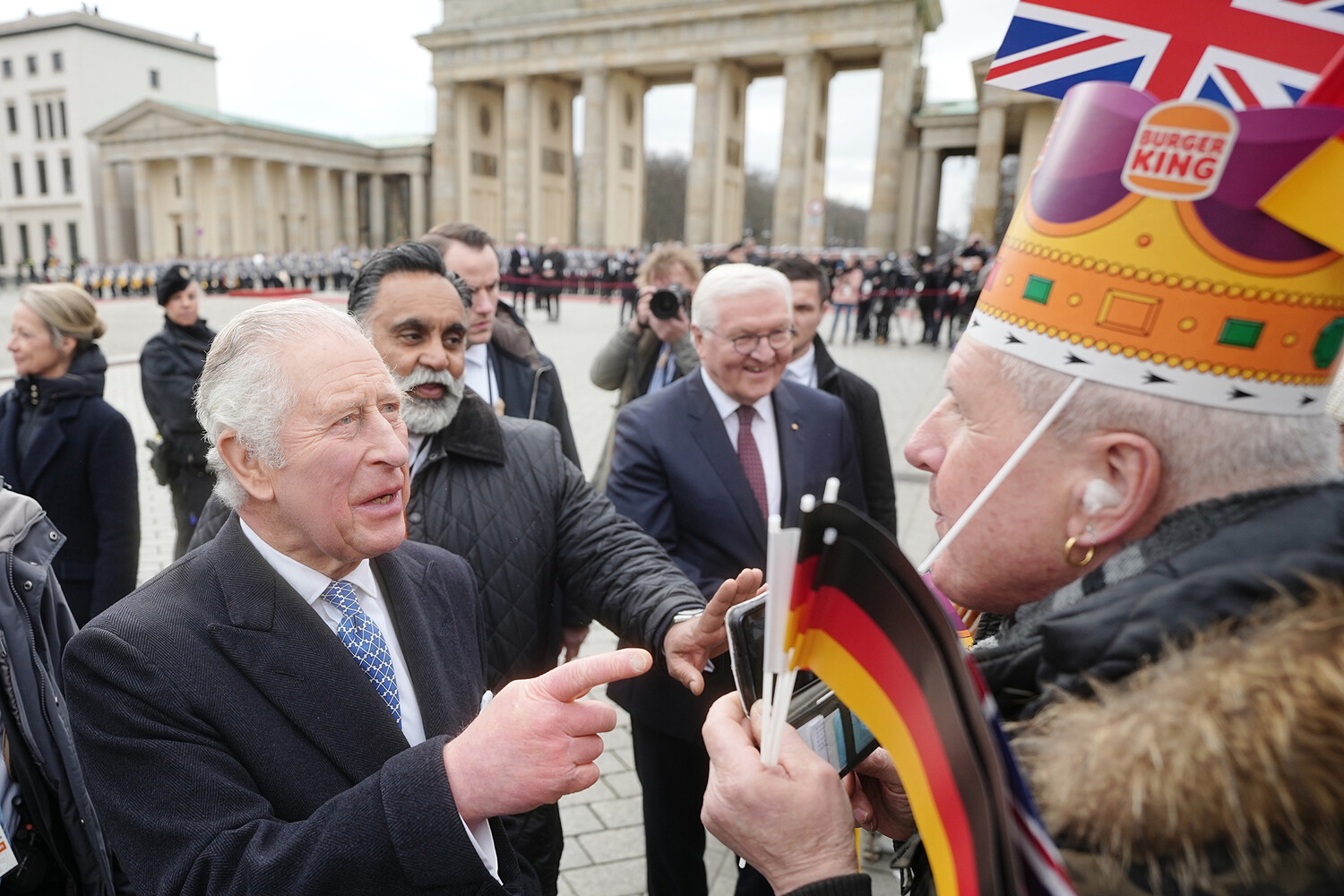 В рамках своего трехдневного визита в Германию король Карл III и его жена Камилла Паркер Боулз посетили официальный прием в Schloss Bellevue. Во время государственного ужина, организованного президентом Германии Франком-Вальтером Штайнмайером и его супругой Эльке Бюденбендер, король и королева-консорт обедали маринованным карпом, цыпленком с грибами и черносливом с «черным чаем и песочным печеньем», также высокопоставленным гостям подавали немецкое игристое вино.