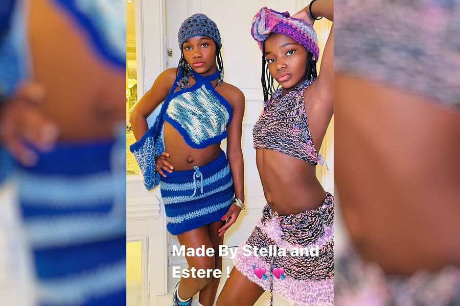 64-летняя Мадонна поделилась новыми фотографиями своих 10-летних дочерей-близнецов Эстер и Стеллы, одетых в наряды, дизайн которых девочки разработали сами. На снимках Эстер и Стелла позируют в ярких вязаных костюмах, состоящих из топов, коротких юбок и необычных головных уборов.