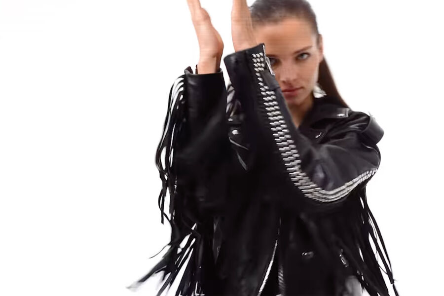 Перед камерой 24-летняя Алеся Кафельникова позировала в нескольких черных образах. Модель снялась в «голой» мини-юбке, топе, косухе с бахромой, откровенном боди с глубоким декольте, жакете и не только. Модели сделали укладку с объемом у корней, а также макияж с угольно-черными стрелками и подводкой.