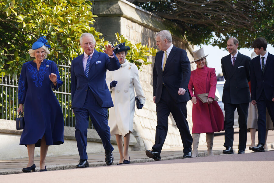 Потомки скончавшейся в прошлом году королевы вышли на публику в Виндзоре, когда процессией, возглавляемой Карлом III и его супругой, королевой-консортом Камиллой, направились в часовню Святого Георгия на праздничное богослужение в воскресенье, 9 апреля.
