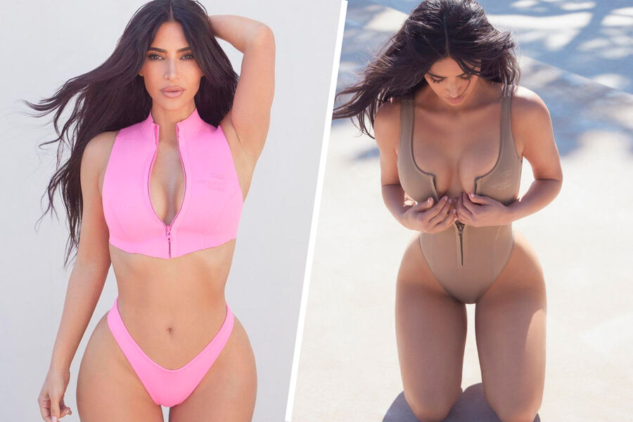 На снимках 42-летняя мать четверых детей позирует на пляже, рекламируя новые модели корректирующих купальников из ассортимента ее бренда SKIMS. На одном из фото Ким Кардашьян демонстрирует слитный купальник на молнии телесного цвета, а на другом позирует в спортивном топе и утягивающих трусиках цвета фуксии.