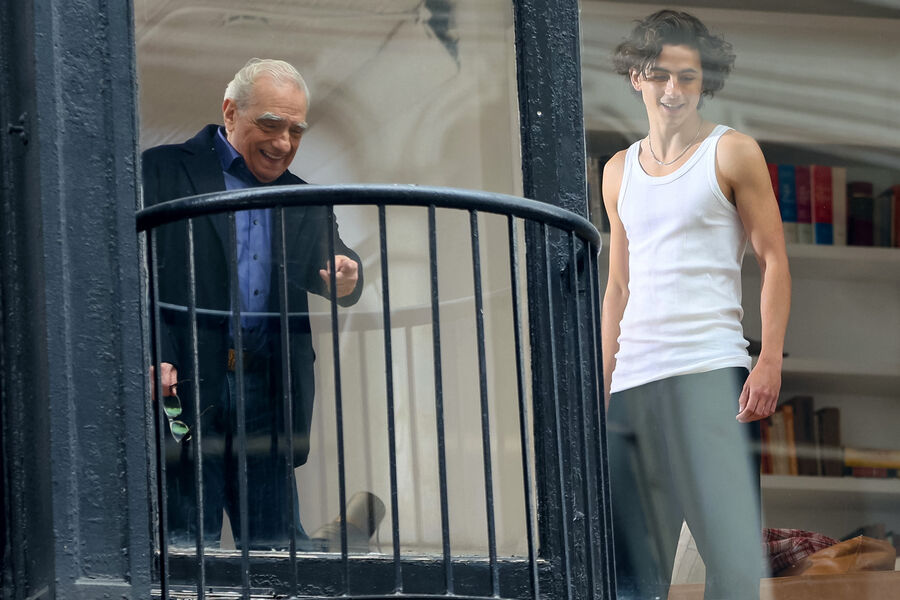 Папарацци также засняли на выходе со съемки Мартина Скорсезе — 80-летний режиссер был одет в джинсы, голубую рубашку и просторный темно-синий пиджак, смеялся и сжимал в руке папку с бумагами, обернутую в газету.