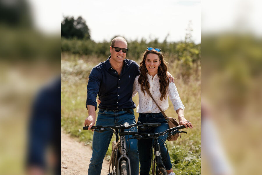 Фотограф Мэтт Портеус снял принца и принцессу Уэльских во время велопрогулки. На опубликованном фото они запечатлены верхом на велосипедах в рубашках, джинсах и солнцезащитных очках. Уильям положил свою руку на плечо Кейт, а та приобняла его за талию.