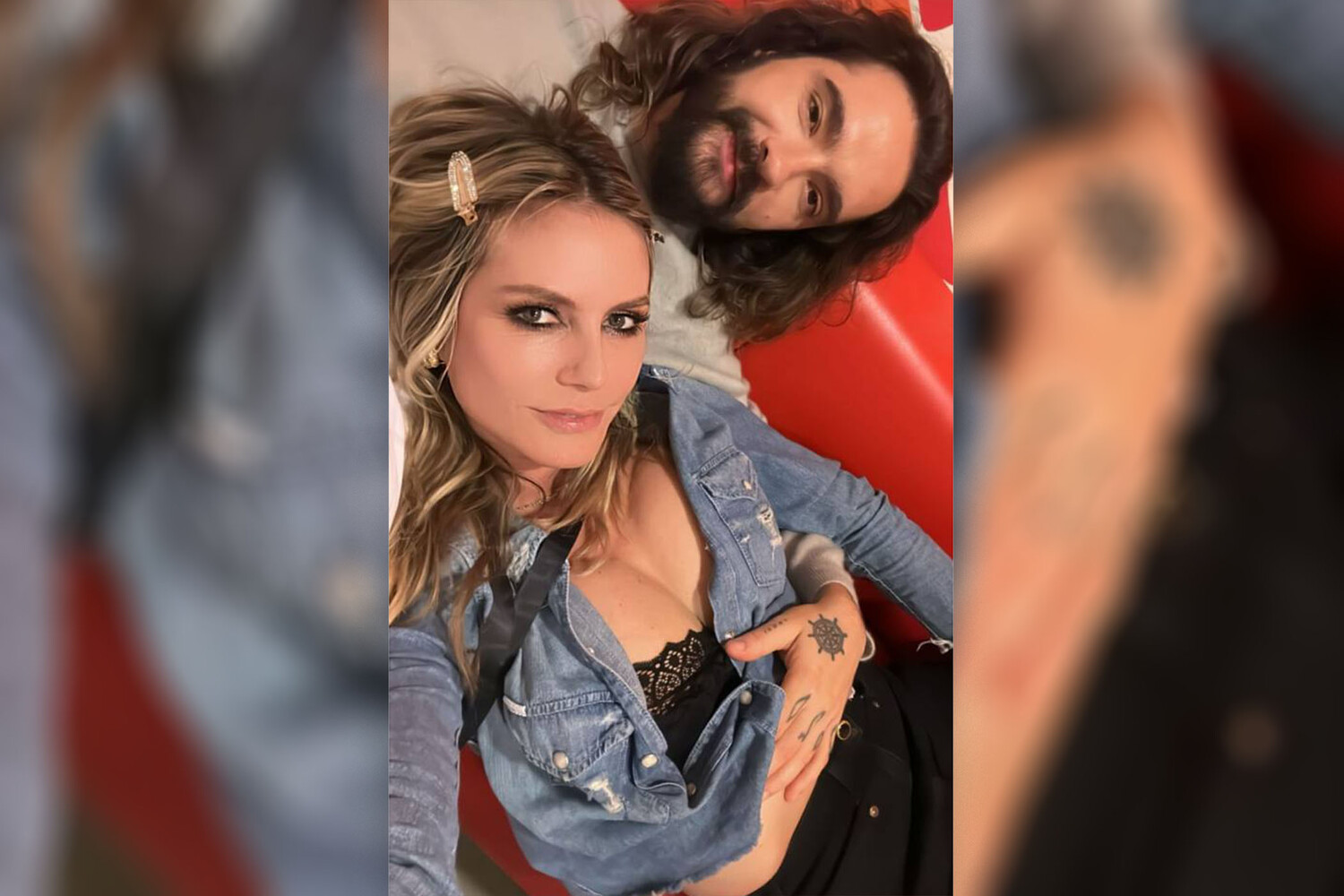 49-летняя Хайди Клум выложила в личном блоге фото с 33-летним Томом Каулитцем. На снимке она позировала в черном кружевном топе, джинсовой рубашке и черных брюках. Модель сделала вечерний макияж со стрелками, пустила легкую волну на волосах и закрепила результат заколкой. Перед камерой ее обнимал за талию муж.