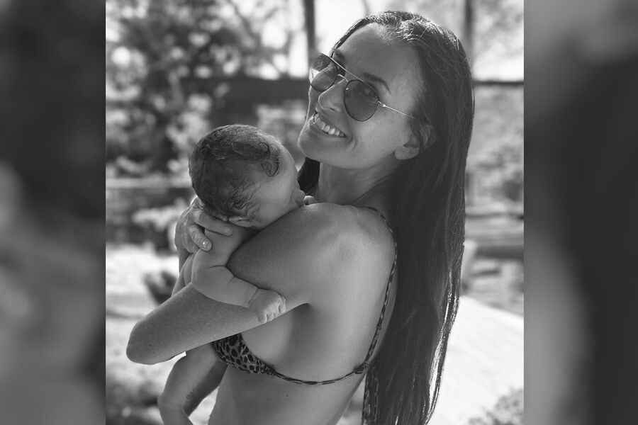 В День матери 60-летняя Деми Мур порадовала подписчиков личного блога новыми снимками с новорожденной внучкой. На черных-белых фотографиях актриса позирует в леопардовом бикини около бассейна, прижимая к груди свою новорожденную внучку. Звезда также опубликовала снимок, где она обнимает свою дочь Румер во время родов, и архивный кадр, на котором актриса беременна Румер.
