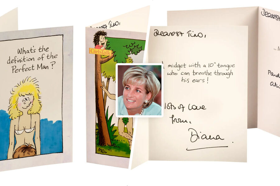 Письма были полны сексуального подтекста и дерзких шуток, и были написаны на пикантных юмористических открытках для взрослых из серии GirlsTalk 1987 года. На первой открытке был нарисован обнаженный мужчина, прикрывший интимные зоны фиговым листом, а на другой женщина в нижнем белье. Обе открытки были подписаны принцессой Дианой: «Дорогому Тино с любовью от Дианы. Не смогла выбрать, какую из этих открыток тебе отправить, думаю, тебе понравятся обе».