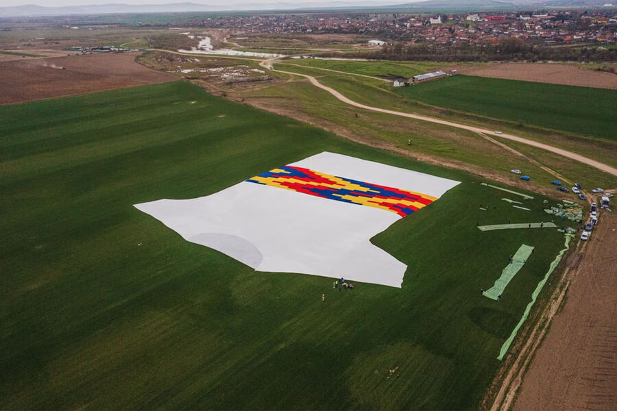 Футболка длиной 108,96 м и шириной 73,48 м стала «переосмысленной моделью» национального трехцветного флага, который также можно увидеть на официальной спортивной форме румынской команды по регби. Она была произведена из 500 тысяч переработанных пластиковых бутылок и представлена в конце марта в Бухаресте.