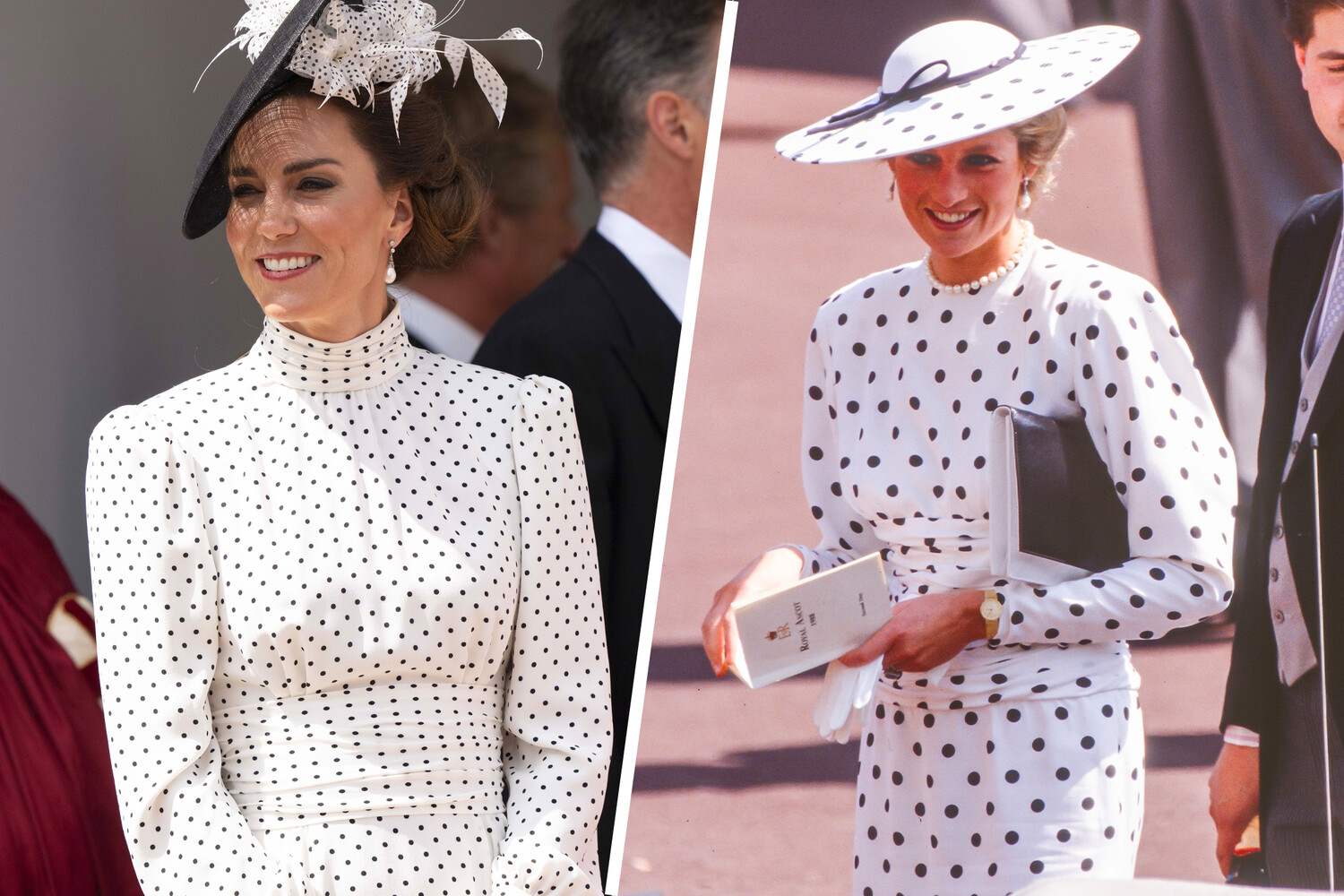Новый выход Кейт Миддлтон напомнил журналистам Mirror образ принцессы Дианы, в котором она появилась скачках в Аскоте в 1988 году. Тогда Диана была одета в белое платье в черный горошек, созданное для нее британским модельером Виктором Эдельштейном и белые туфли с черными мысами.