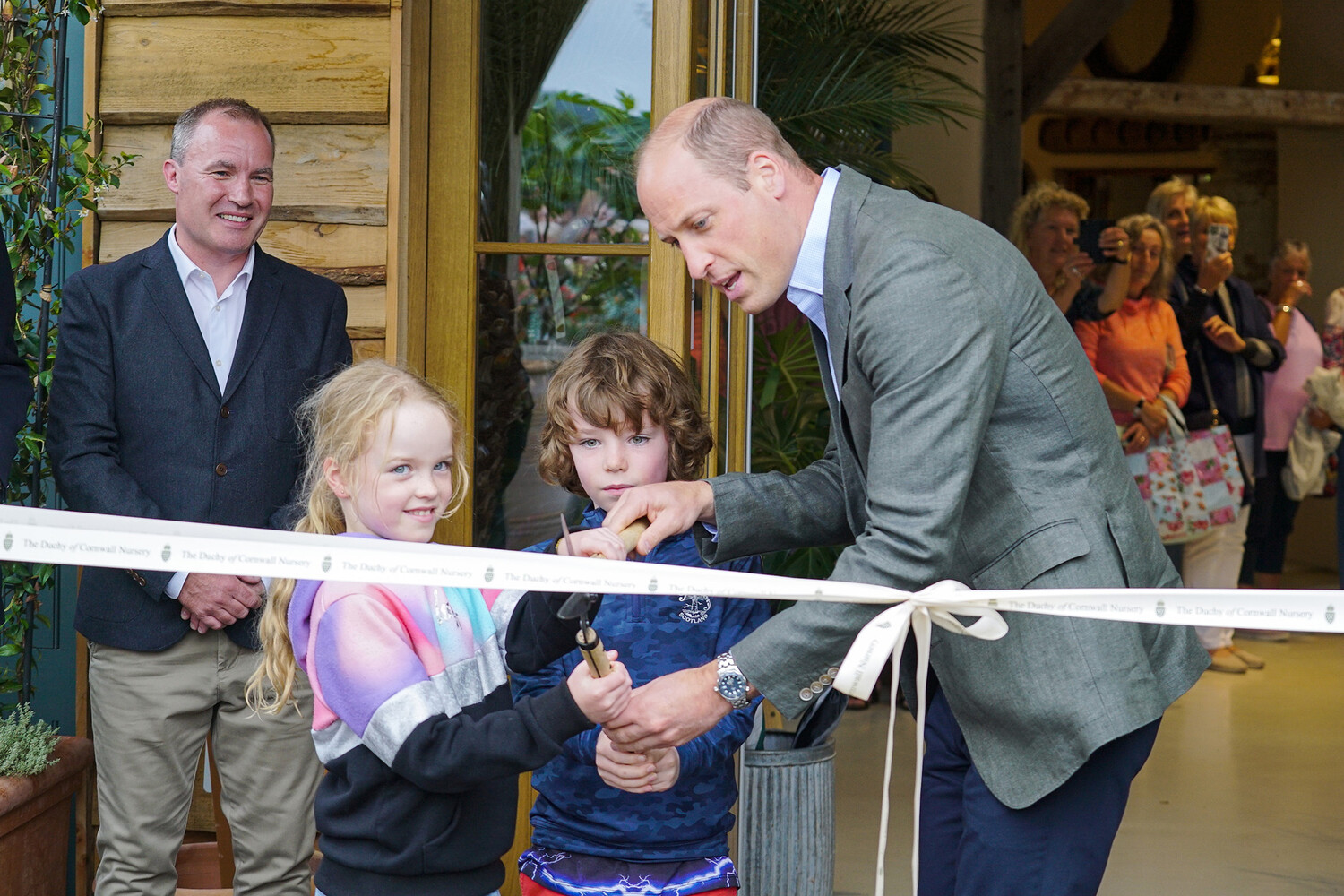 41-летний принц Уильям перерезал ленточку вместе с двумя детьми на церемонии открытия ресторана The Orangery вблизи небольшого города Лостуитиел в графстве Корнуолл.