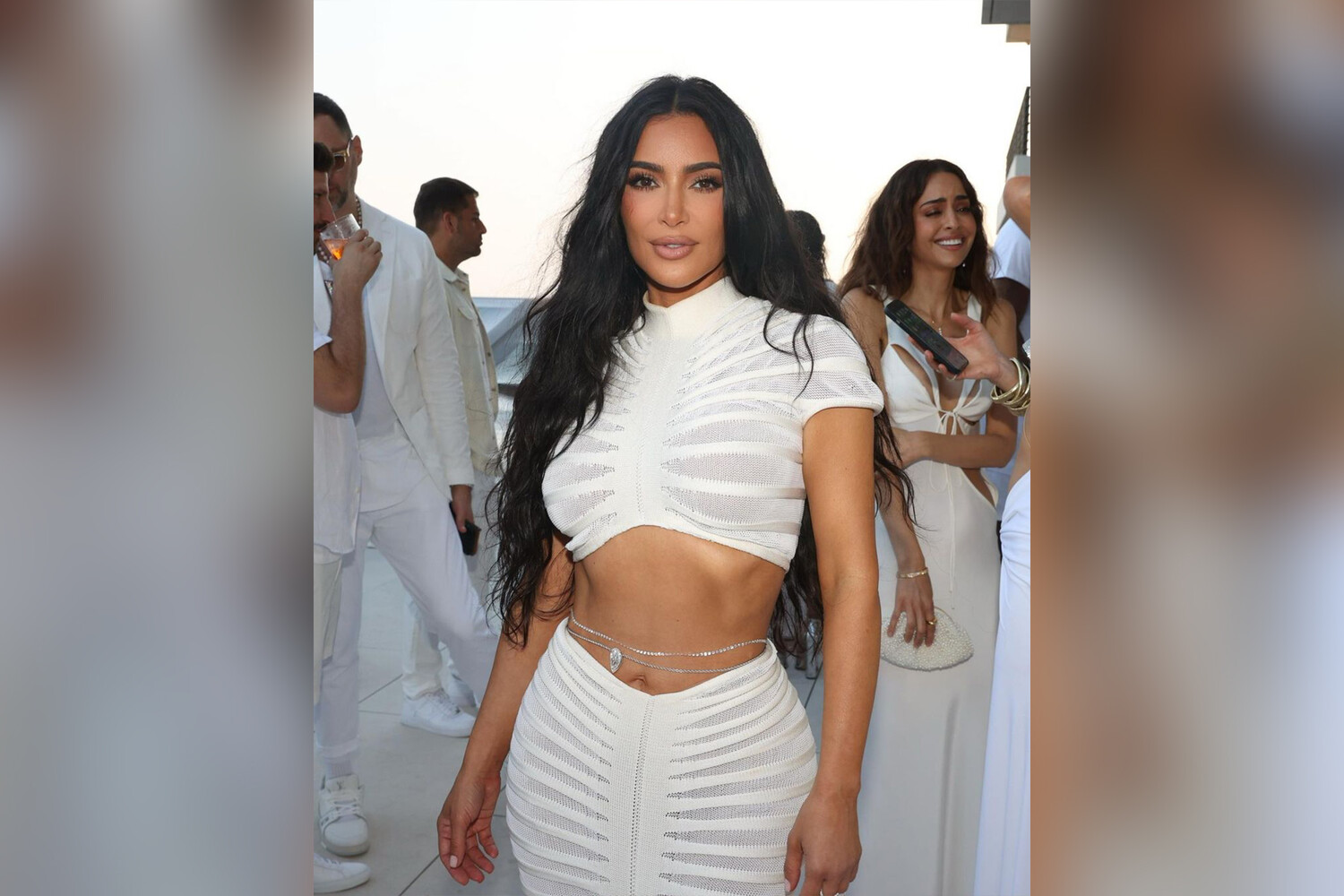 42-летняя Ким Кардашьян была одета в обтягивающий топ с глубоким декольте, объемные кожаные брюки от Balenciaga и синие туфли на высоком каблуке. В качестве аксессуара бизнесвумен выбрала одну из самых дорогих дизайнерских сумок в мире — Hermès Birkin из крокодиловой кожи. По данным журналистов, цена сумки Ким Кардашьян может составлять от $300 до $600 тыс.