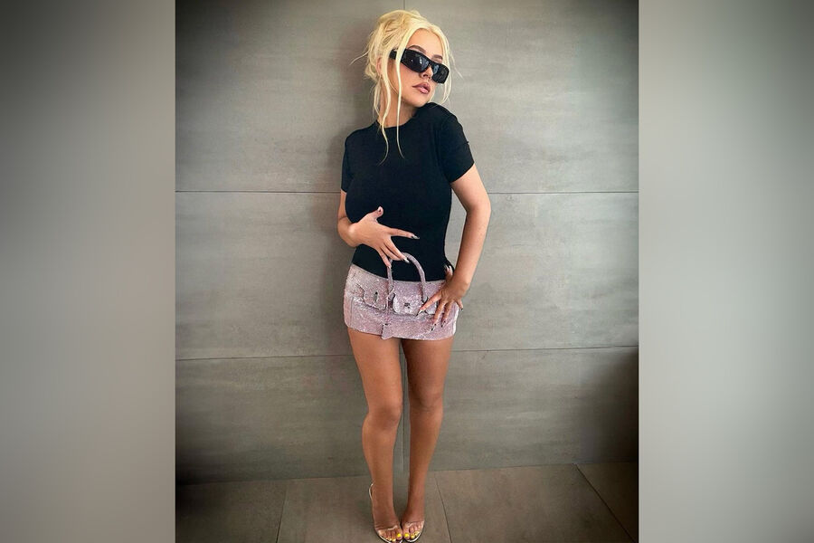 Кристина Агилера надела блестящую розовую мини-юбку, напоминающую сумку Hermès Birkin. Об этом пишет Daily Mail.