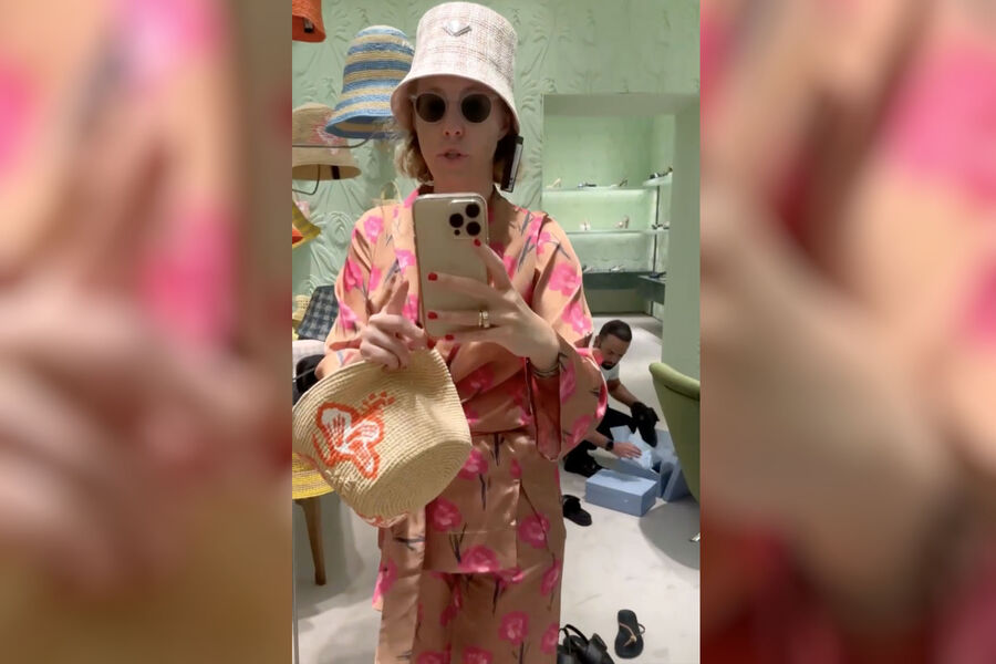 В новом видео Ксения Собчак позировала в атласном розовом костюме с ярким цветочным принтом и солнцезащитных очках. Перед зеркалом телеведущая выбирала шляпу, а затем попросила подписчиков выбрать лучший вариант.