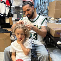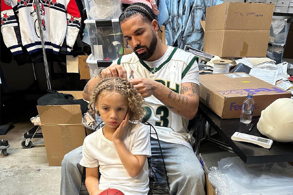 Дрейк опубликовал фотографию, как заплетает 5-летнему сыну Адонису косички. Об этом пишет People.
