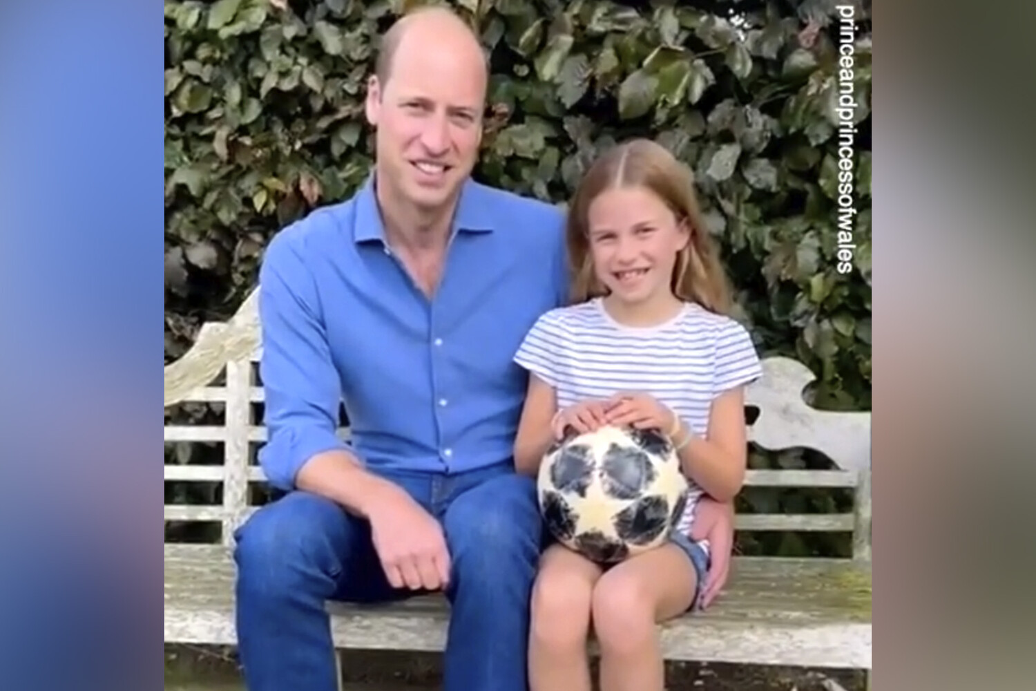 В ролике Уильям сидит на скамейке рядом с Шарлоттой, которая держит в руках футбольный мяч. Принц Уэльский одет в голубую рубашку и синие джинсы, а его дочь — в белую футболку в синюю полоску и джинсовые шорты. В своем обращении королевские особы пожелали футболисткам английской сборной удачи в финале чемпионата мира среди женщин, где им предстоит сразиться с командой Испании.