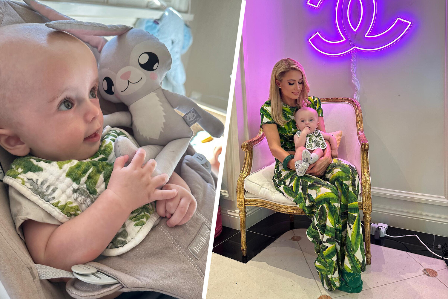42-летняя Пэрис Хилтон показала подписчикам, как проводит время с семимесячным сыном. Актриса взяла ребенка с собой в бутик Chanel. Пэрис была одета в бело-зеленый комбинезон, а Феникс в светлую футболку и нагрудный слюнявчик, расцветка которого перекликалась с нарядом матери.