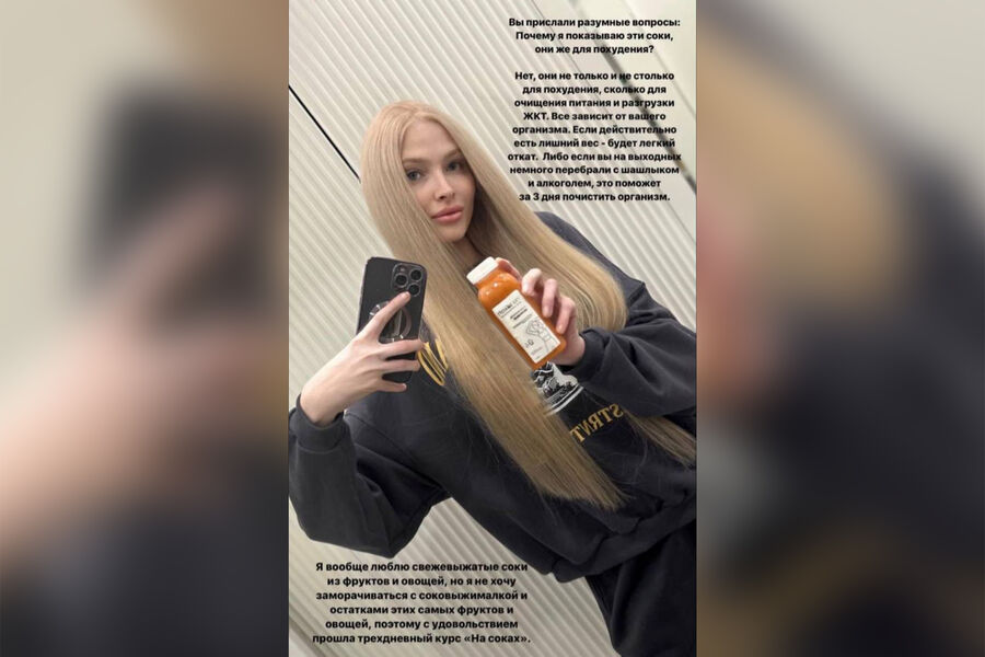 Подписчики модели выразили недоумение относительно ее нового поста. В ответ на критику Алену Шишкова заявила, что рекламируемые ей соки нужны «не столько для похудения, сколько для очищения, питания и разгрузки ЖКТ».