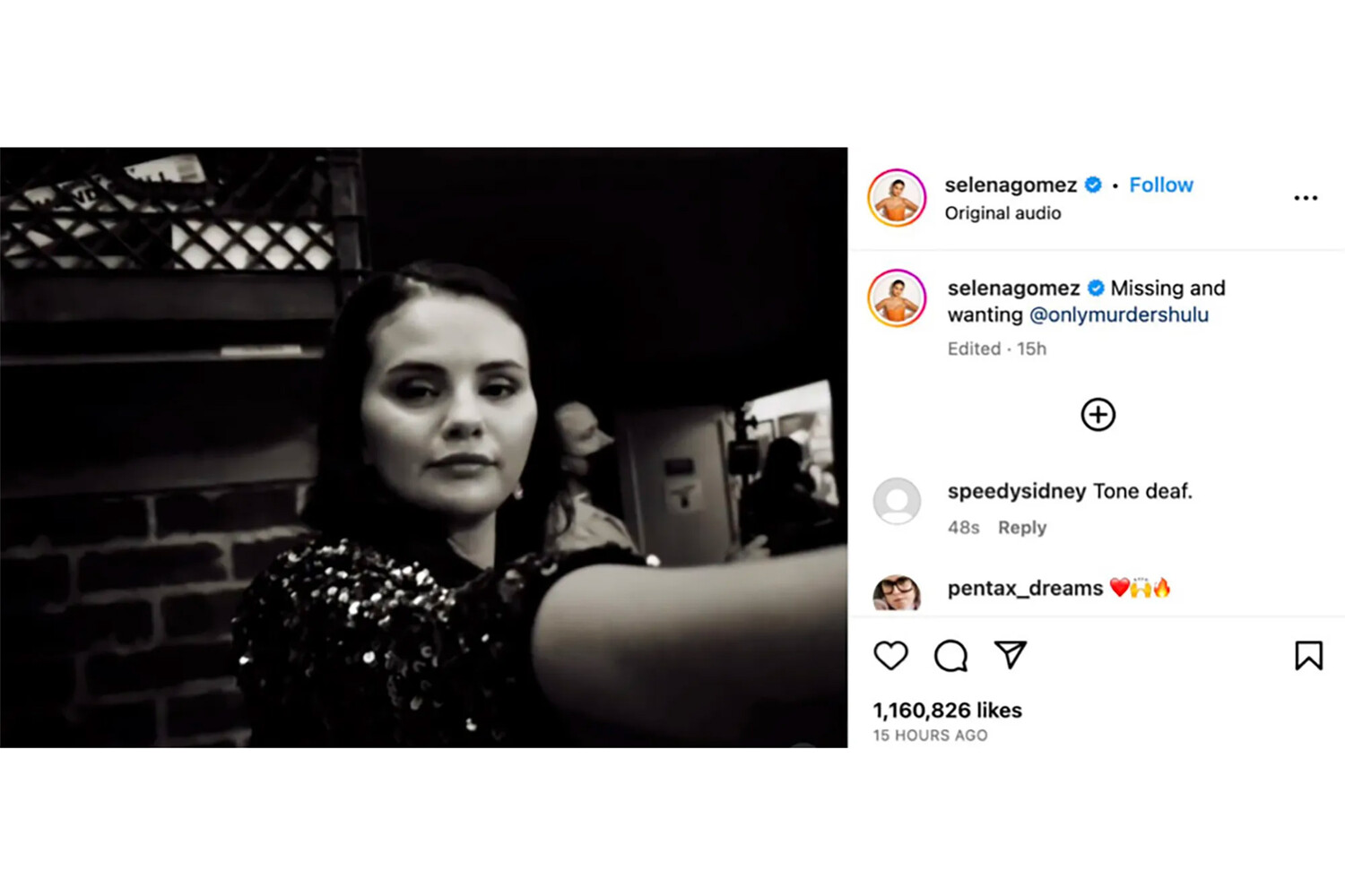 31-летняя Селена Гомес опубликовала в личном блоге кадры со съемок сериала «Убийства в одном здании», в котором играет одну из главных ролей. В посте артистка отметила официальный аккаунт сериала и добавила подпись, что скучает по работе.