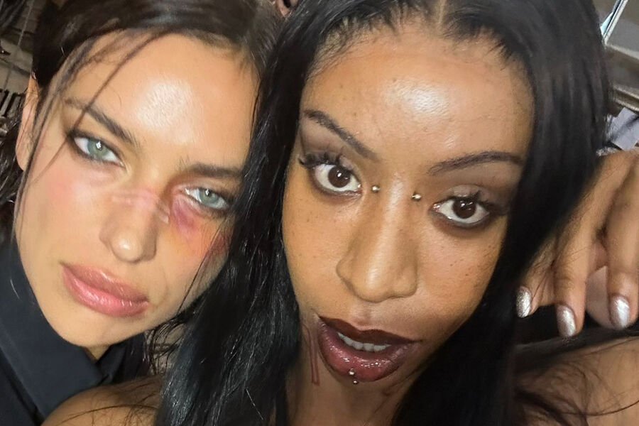 Ирина Шейк приняла участие в показе бренда Mowalola. На подиум она вышла в необычном образе — с фингалами, синяками и порезами. Ей также сделали «мокрую» укладку. Она надела серебристое платье с открытой спиной и фиолетовые носки-сапоги на каблуках. Однако поклонники не оценили задумки бренда и обвинили их в романтизации домашнего насилия.