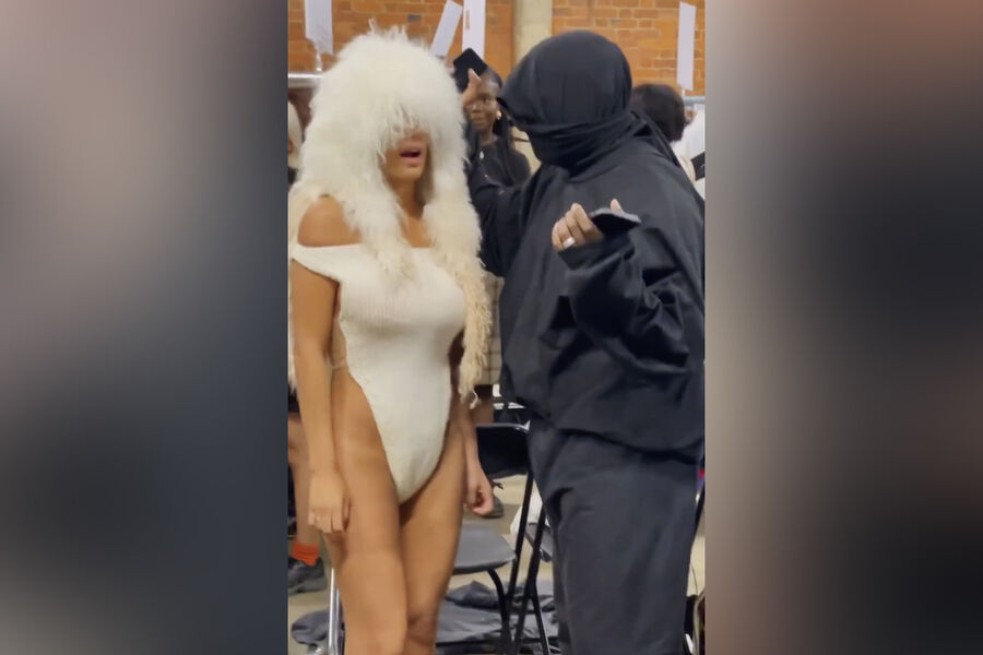 Жена Канье Уэста Бьянка Сенсори пришла на показ в шапке-ушанке и боди