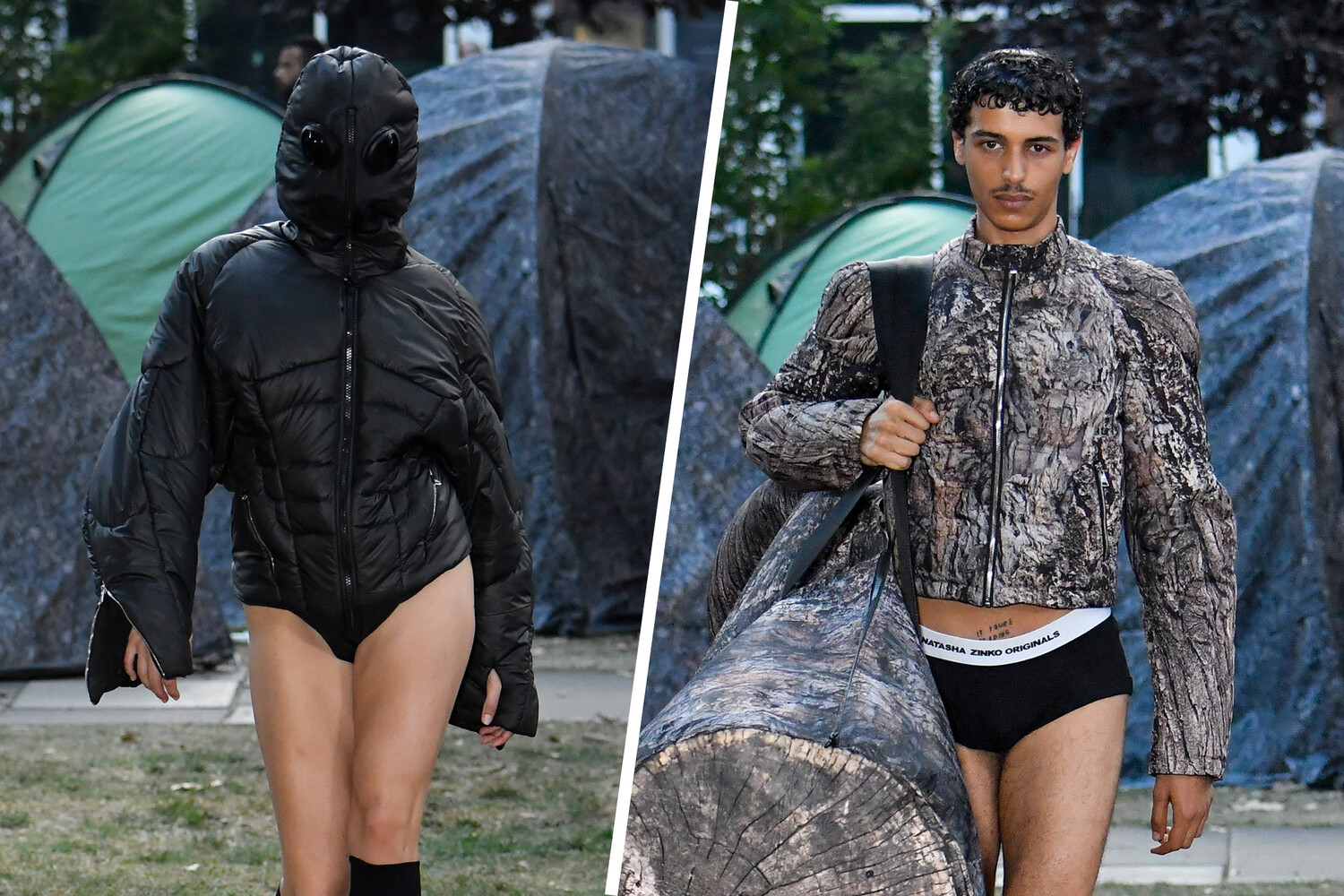 «Украинский дизайнер Наталья Зинько на Неделе моды в Лондоне. Показ прошел в импровизированном палаточном городке. Милитаризм, кочевничество, идея выживания», — написала Собчак.