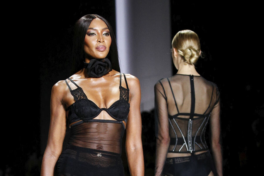 53-летняя Наоми Кэмпбелл вышла на подиум в «голом» платье и кружевном белье