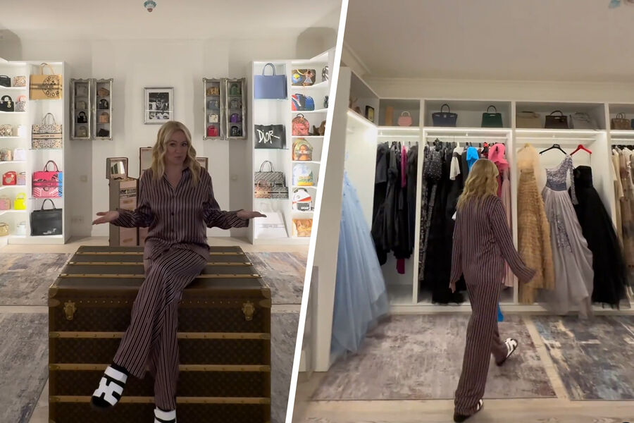 Продюсер Яна Рудковская показала гардеробную с зонированием для сумок и платьев. Снимками она поделилась в Instagram (владелец компания Meta признана в России экстремистской и запрещена).