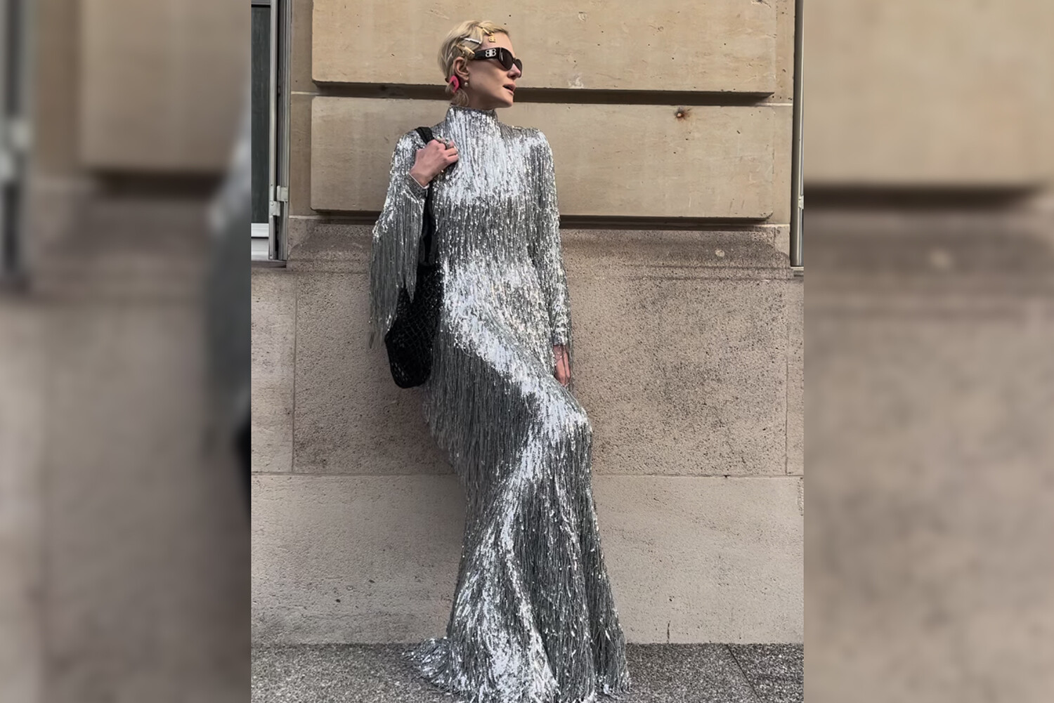 56-летняя актриса в вечернем наряде снялась на улицах Парижа. Образ дополнила черная сумка, разноцветные заколки и солнцезащитные очки.