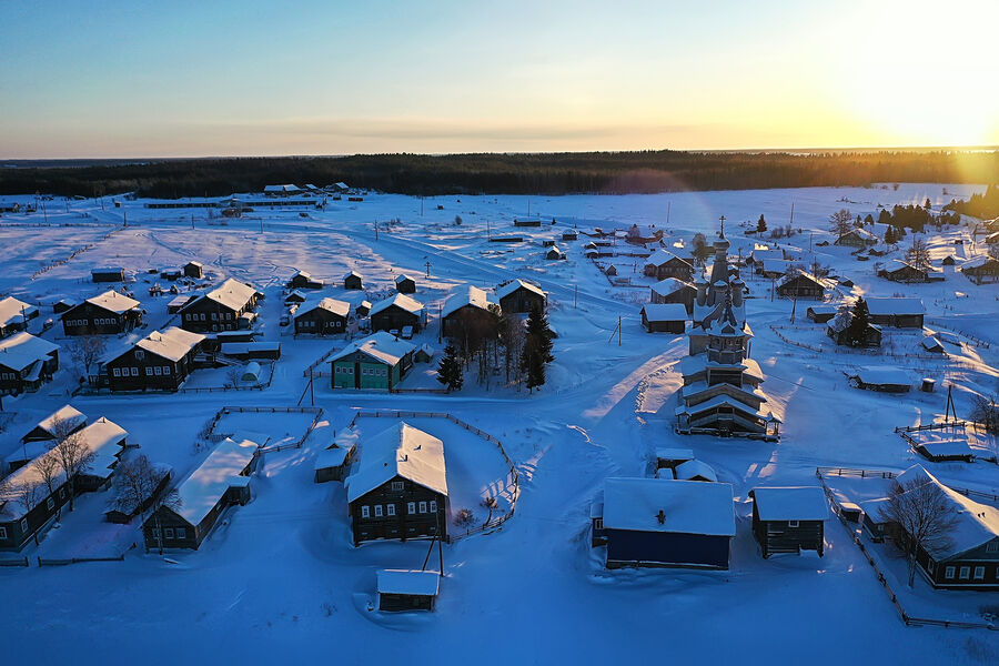«Одна из главных Посада местных достопримечательностей, помимо суровой северной природы, — Преображенская церковь с колокольней. А в Кимжу приезжают полюбоваться плавным поворотом реки и избами на берегу, увидеть недавно отреставрированную Одигитриевскую церковь и северные мельницы-столбовки», — посоветовали эксперты.