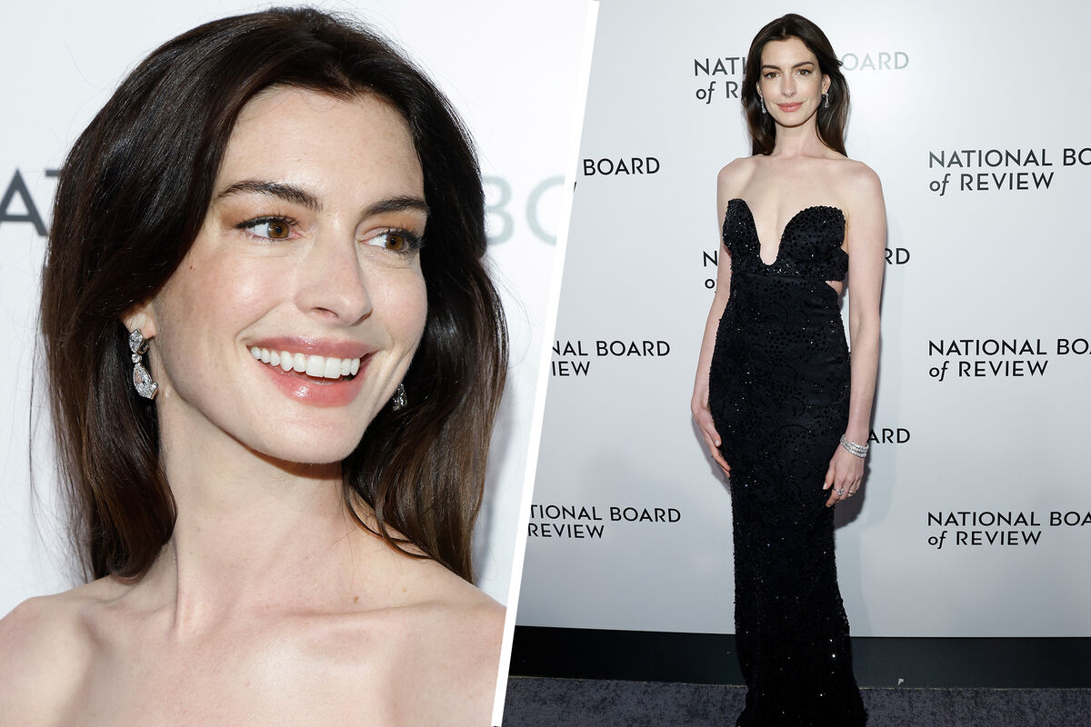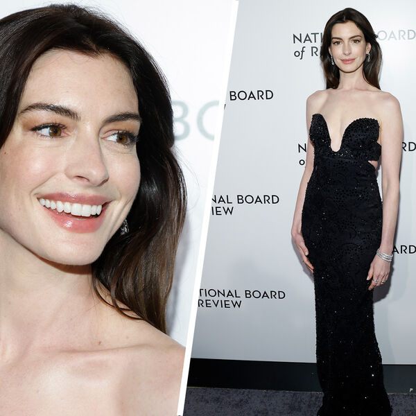 На мероприятии 41-летняя Энн Хэтэуэй присутствовала вместе со своим супругом, 42-летним Адамом Шульманом. Актриса появилась на публике в черном длинном платье Armani с глубоким декольте и вырезами по бокам. Наряд знаменитости был украшен пайетками. Энн Хэтэуэй дополнила образ бриллиантовыми серьгами, браслетом и несколькими кольцами. Звезда вышла в свет с распущенными волосами и нюдовым макияжем.