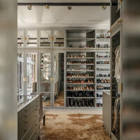 Ксения Собчак показала интерьер. Она выполненная в светлых оттенках: серые шкафы, золотые детали, коричневый ковер и зеркала. Панорамные окна выходят во внутренний сад. Поклонники в комментариях сравнили гардеробную с домом Ким Кардашьян