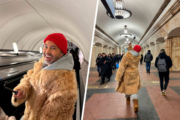Стилист Александр Рогов появился в метро в объемной шубе. Снимками он поделился в своем Telegram-канале.