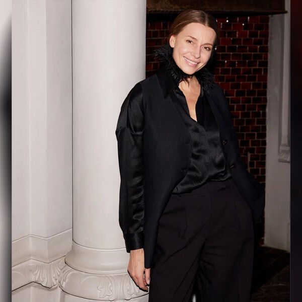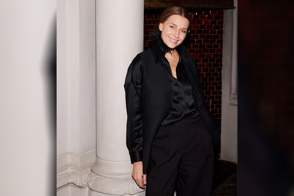 46-летняя Любовь Толкалина пришла на премьеру в черной блузе с перьями, брюках и жилете. Волосы она уложила в пучок и сделала нюдовый макияж.