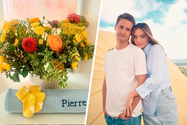 Миранда Керр родила сына. Знаменитость опубликовала фотографию, на которой были запечатлены пинетки желтого цвета, одеяло с именем новорожденного ребенка и ваза с букетом цветов.