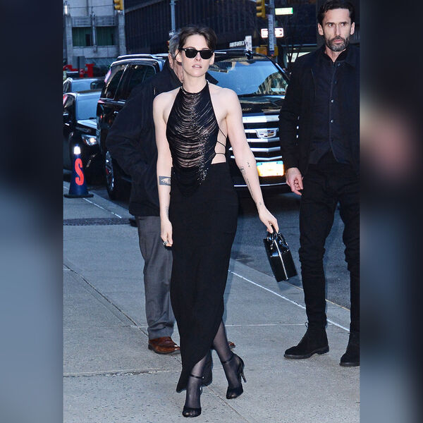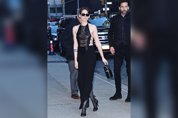 33-летняя Кристен Стюарт попала в объективы папарацци 11 марта в Нью-Йорке. Актрису подловили, когда она направлялась на съемки «Позднего шоу Стивена Колберта». Звезда «Сумерек» появилась на публике в черном откровенном топе с бахромой, юбке-макси с вырезом сзади, капроновых гольфах и туфлях на каблуках. Она также надела несколько колец и черные солнцезащитные очки. Кристен Стюарт собрала волосы в небрежный пучок и сделала макияж с акцентом на глаза.