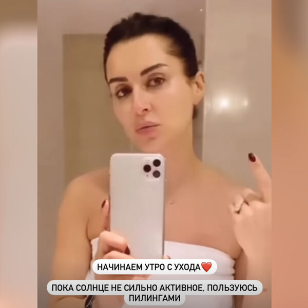 «Начинаем утро с ухода. Пока солнце несильно активное, пользуюсь пилингами», — написала Тина Канделаки.