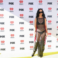 На мероприятии 39-летняя Кэти Перри появилась в откровенном наряде. Певица вышла на публику в черном платье-сетке с красными бантами по бокам, под которое надела комплект нижнего белья. Исполнительница дополнила образ солнцезащитными очками и высокими кожаными сапогами на каблуках. Стилисты сделали знаменитости легкую укладку, а визажисты — макияж с черными стрелками и розовыми губами.