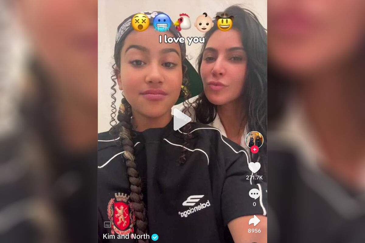 Звезда реалити-шоу, модель и бизнесвумен Ким Кардашьян снялась с дочерью Норт Уэст без макияжа. Снимками Норт Уэст поделилась на своей странице в TikTok.