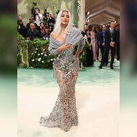 43-летняя Ким Кардашьян посетила ежегодный бал Института костюма Met Gala, который прошел 6 мая в Метрополитен-музее в Нью-Йорке. Для мероприятия звезда реалити-шоу выбрала наряд британского модельера Джона Гальяно. Бизнесвумен позировала перед фотографами в серебристом платье с экстремально узким корсетом и прозрачной юбкой, которое было украшено цветами. Ким Кардашьян также надела серый укороченный кардиган с катышками, туфли на платформе и кольцо. Интернет-пользователи были шокированы узкой талией знаменитости.