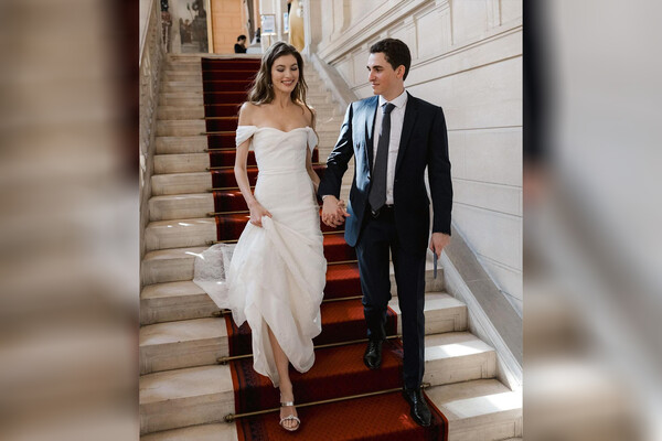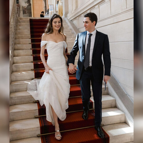 Свадьба прошла 3 мая в Париже. Невеста предпочла платье Giambattista Valli и украшения Chaumet. Ей также сделали легкие локоны и нюдовый макияж. В руки она взяла букет из белых роз.