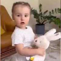 Юлия Королева поделилась фотографиями, на которых дочь демонстрирует подарок папы — плюшевого зайца.