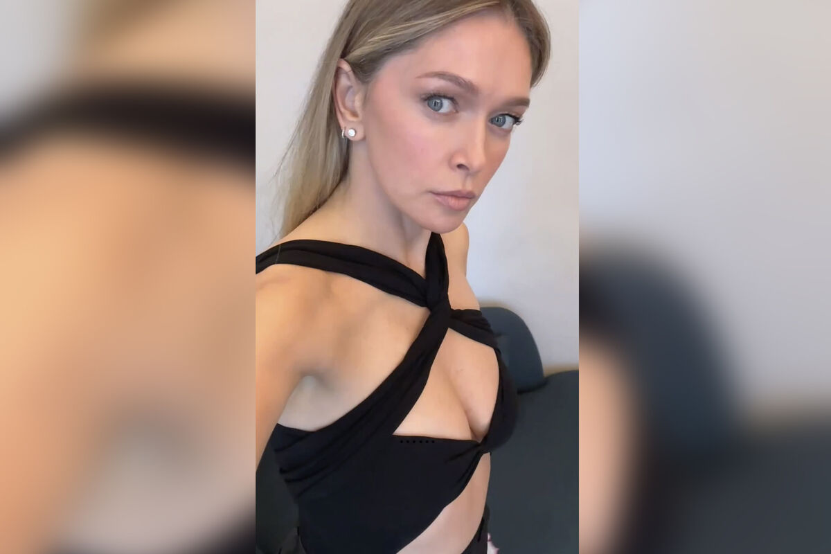 42-летняя Вера Брежнева показала фигуру в «голом» топе и кожаных брюках клеш. Волосы она уложила легкими локонами и сделала вечерний макияж.