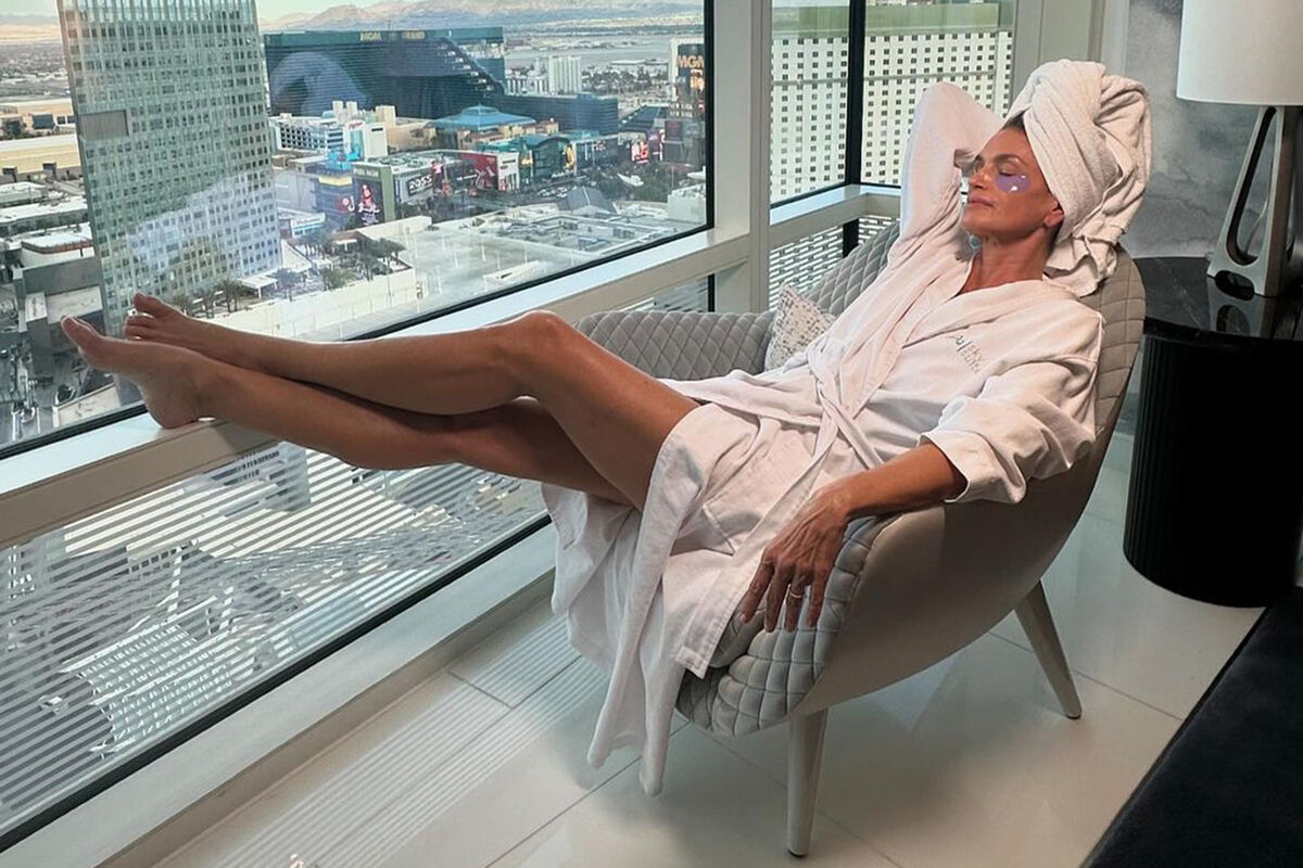 58-летняя Синди Кроуфорд предстала перед камерой в белом халате и с полотенцем на голове. Супермодель 90-х была запечатлена без косметики. Знаменитость с патчами под глазами сидела на кресле с видом на панораму города.