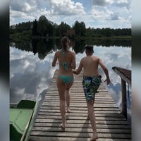 35-летняя Агата Муцениеце была запечатлена с сыном Тимофеем. Актриса надела голубой купальник, а ее наследник — зеленые шорты с принтом. Знаменитость вместе с мальчиком пробежалась по пирсу и прыгнула в воду.