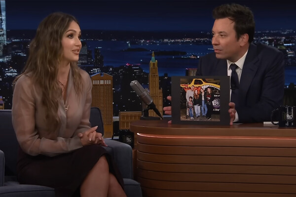 43-летняя Джессика Альба стала гостьей «Вечернего шоу с Джимми Фэллоном». На программе актриса появилась в серой прозрачной рубашке Fendi, которую сочетала с черной юбкой-карандаш и туфлями на каблуках. Знаменитость дополнила наряд золотыми серьгами-кольцами. Визажисты сделали ей макияж с черными стрелками и нюдовыми губами, а стилисты по волосам — локоны.