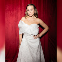 Юлия Барановская предпочла для мероприятия кремовое платье с глубоким декольте и пышным лифом. Образ она дополнила белыми лодочками с острым мысом. Ей также сделали легкий макияж с блеском и укладку: передние локоны убрали заколками назад и сделали мягкие пряди.