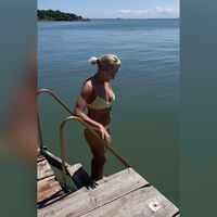 61-летняя Алена Свиридова показала фигуру в крошечном бикини ванильного оттенка. Волосы она уложила в высокий хвост и отказалась от макияжа. Певица прыгнула с пирса с ластами для дайвинга в море и сняла весь процесс на видео.